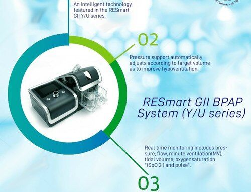 An intelligent technology, featured in the RESmart GII Y/U series, it delivers automatic solutions for patients with OSA and/or respiratory insufficiency. Aligned with the same platform as RESmart GII BPAP System, the Y series adapt pressure automatically to patients’ needs and provide better synchronization.
